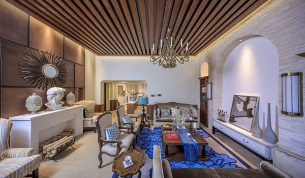 客厅作为待客区域,一般要求简洁明快,同时装修较其它空间要更明快光鲜,通常使用大量的石材和木饰面装饰;美国人喜欢有历史感的东西,这不仅反映在软装摆件上对仿古艺术品的喜爱,同时也反映在装修上对各种仿古墙地砖、石材的偏爱和对各种仿旧工艺的追求上。总体而言,美式田园风格的客厅是宽敞而富有历史气息的。专业好文,尽在门业视界。