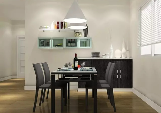 如果家里的餐厅是靠墙的话,那么餐边位置不要浪费了。可以用来放置碗碟筷、酒水、饮料,也可以当做临时的备餐台,放放汤水、电饭煲等。