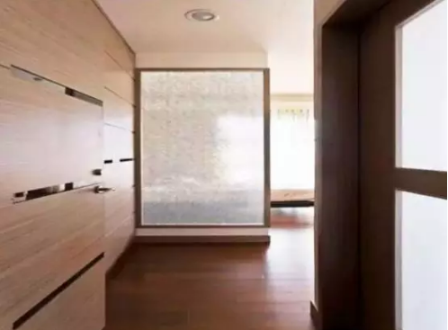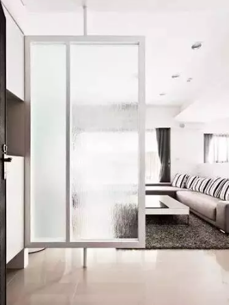 有的家庭,进门没有玄关,一开门就可以看到整个客厅或餐厅,隐私性较差,这时候,玻璃隔断(磨砂玻璃)可以在进门口进行视线阻隔,形成一个“假玄关”。