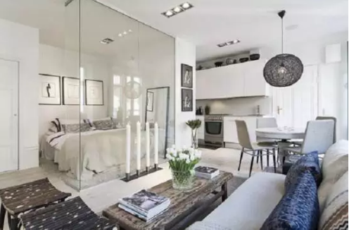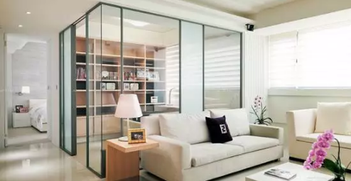 很多的单身公寓一般都不会有独立的一个卧室,这个时候就得屋主自己规划出一间房,那么就可以用玻璃隔断加帘子,既可以保证私密性也让整体不突兀。也有的家里公共空间的面积足够大的户型中,这种户型,在改造的时候会考虑在客厅再隔出一个书房或小卧室(也可能是儿童房),玻璃隔断,可以解决采光和空间结构的尴尬,实现户型的多样性。