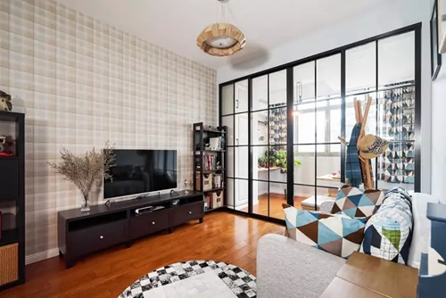 小户型最害怕的就是客厅在视觉上变的狭窄,如果把客厅与阳台用玻璃进行隔断,不仅可以延伸空间感也能够提亮空间,真是一举两得。