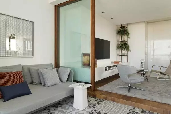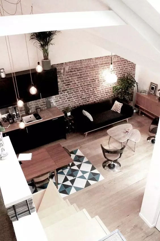 瓷砖+木地板的拼接,还可以有区分开放空间功能区的作用。