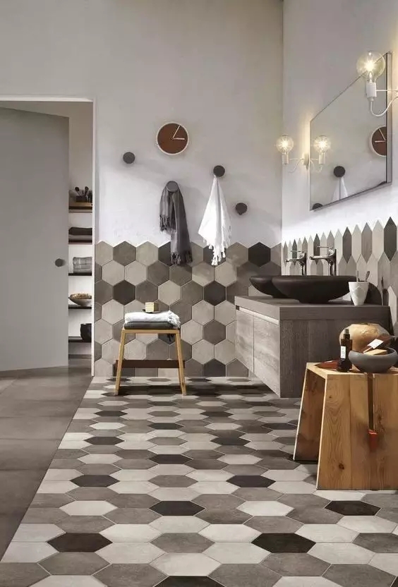 瓷砖+木地板的拼接,可以让整个空间变得更加活泼,艺术感满分。