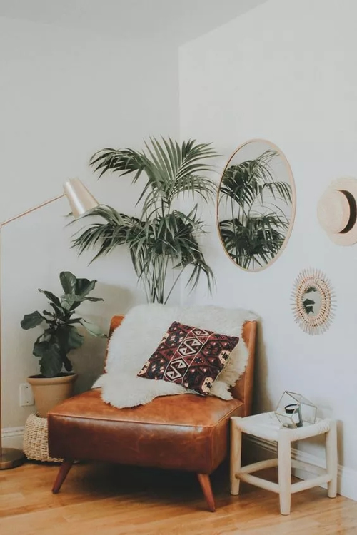 把角落设计成一处阅读角是常用的手法。在和整体风格协调统一的条件下,一张舒适的桌椅,一块地毯、一盆盆栽等漂亮的小型装饰品都可以构成一方世界。