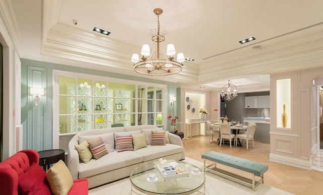 客厅比较小,而且高度比较矮的话,是不适合大面积吊顶的,很容易让人产生压抑感。
