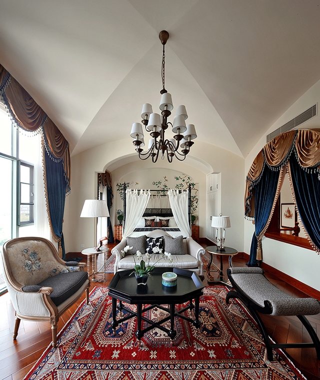 ④ 尤其对不规则屋顶的客厅,可通过吊顶来让客厅的顶面达到规整。