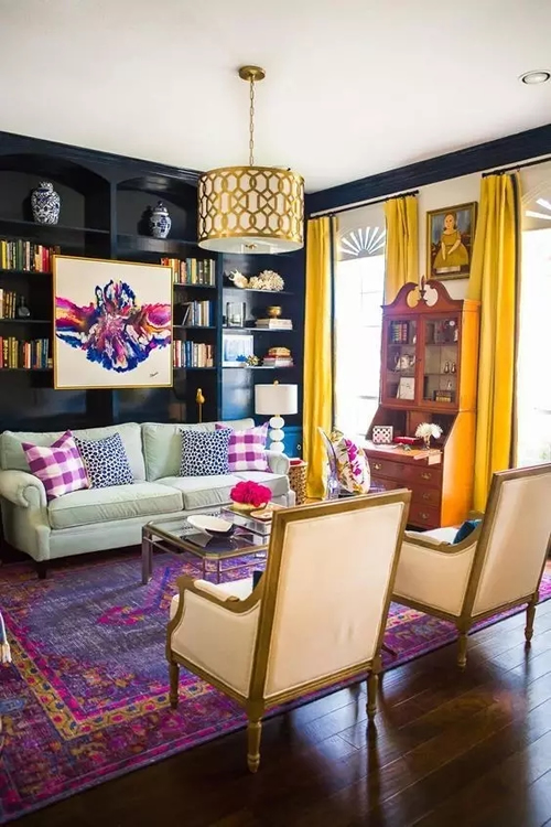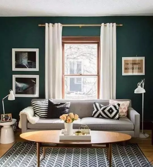 单一的颜色也很好搭配,可以考虑跟着主色调的色系走,也可以跟局部点缀的配饰或家具色系走,也可以自成一个色系与整体空间进行和谐搭配,也可以发挥点睛作用。