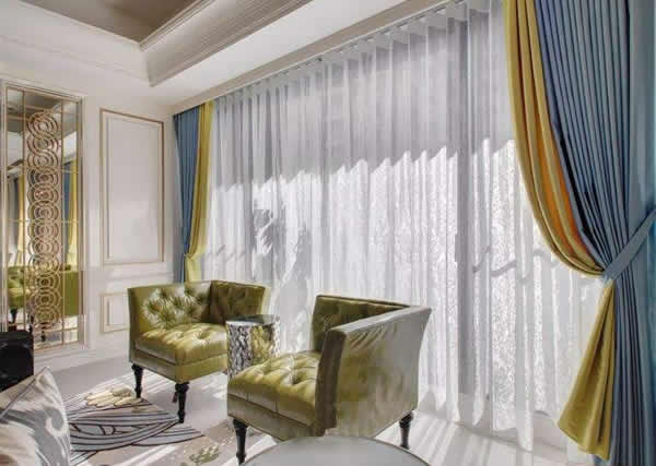 长度上,只有深宅大院才有资格让天鹅绒窗帘重重垂落于地面,不然就省点心让窗帘长到能轻拂光脚脚背就行了。