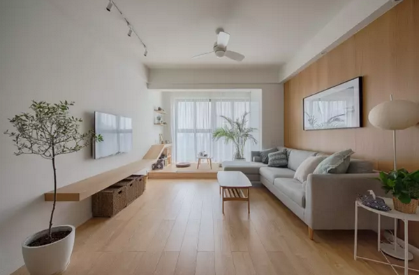 对于一些较为长的客厅,就可以考虑用多人长沙发来提升客厅的容客率,并在靠近阳台推拉门旁边加上一张单人沙发或单椅,这样整体搭配就实用又显得大方多了;