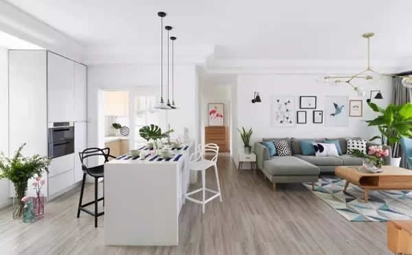 三、地面材料:最好不要大面积用实木地板或者竹木地板,变形概率很大。地板用实木复合地板比实木地板稳定。若是特别喜欢实木地板,则需要全封漆的,防止水汽进入,发霉变形,并且在地板下铺防潮膜,要铺到墙脚与踢脚线相同的高度;如果是地面铺地砖,地砖下面的基层也要采取防潮措施。海边最大的问题就是潮湿,如果光面的瓷砖非常摔倒,因此尽量用毛面的,防滑。
