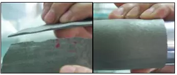 聚合物水泥防水产品分为刚性和柔性,而区分的依据就是防水的柔韧性,可以理解为防水材料的弹性、延展性。柔韧性的强度取决于液料中乳液的固含量。乳液固含量越高,产品柔韧性越好,反之则低(见下图)。