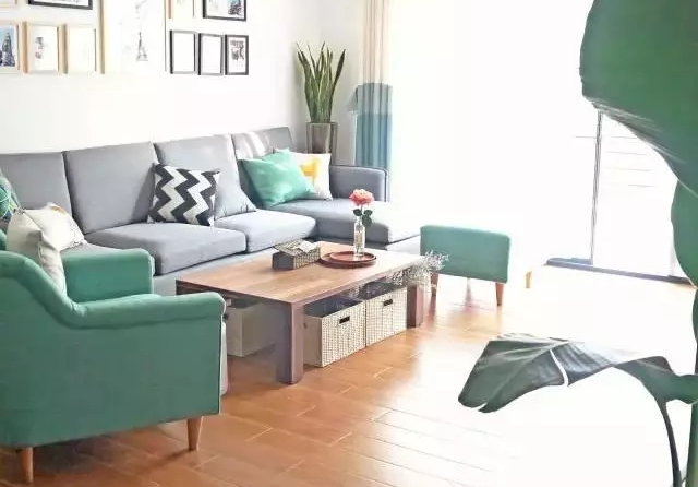 沙发,可以说是客厅的颜值担当。全屋黑白灰毕竟太无聊,所以可以试图用一些不一样的色彩来点亮整体,