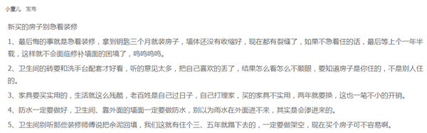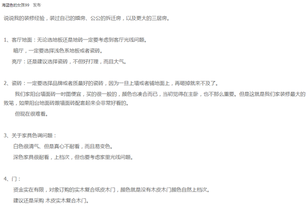 这些装修经验小编认为还是很实用,是经受过检验的。对于即将要装修的或是装修过的你们有什么想要分享的都可以说一说。