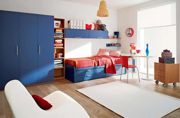 这个时候,儿童房需要给孩子留出一大片的留白,这些留白可以根据他们的喜好来布置。而且这个阶段的孩子已经有了私人空间意识,一个书桌,外加一个能上锁的柜子,能提升他们对房间的归属感。