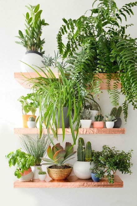购买一个小架子,放上几盆绿植,随意摆放在某个区域,甚至开可以进行挪动,让整个家随时有点小变化。