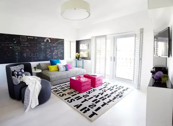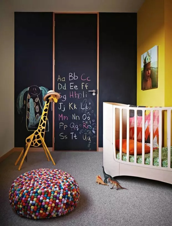黑板墙只有黑色?不不不,黑板墙也有彩色的,可以跟你家的风格一起搭配。
