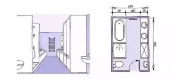 串联的设计,狭长的卫生间可以考虑的设计方案,不过在这要提面积是宽窄似的,在选购面盆上面尺寸最好挑选稍微小一点的尺寸。
