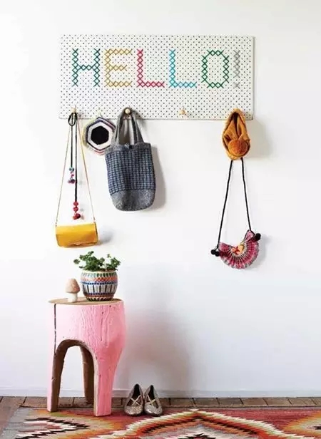 在玄关处安一个洞洞板,可挂上包包衣服帽子等,同时还可以在上面锈个字,有客人来应该也是个很不错的小惊喜。