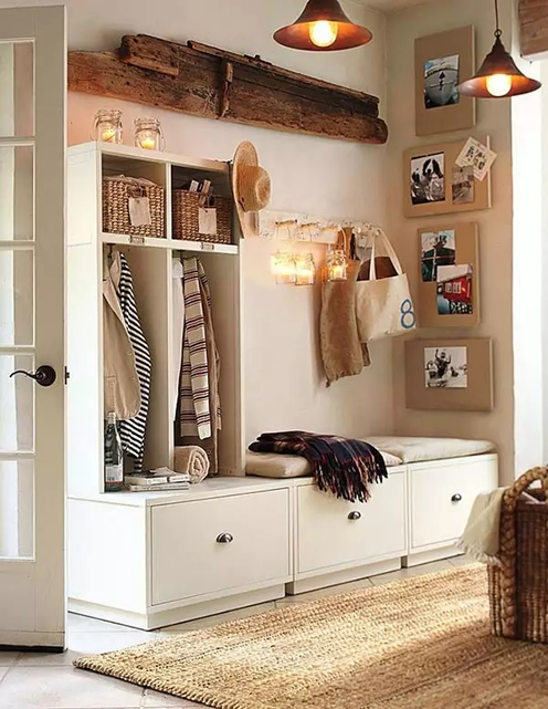 小户型收纳是一个大问题,但打造收纳空间尽量采用内嵌式或者内藏式的收纳家具,避免过多物品收纳在外阻碍视觉,墙上搁板收纳不宜过多,一面墙足以。