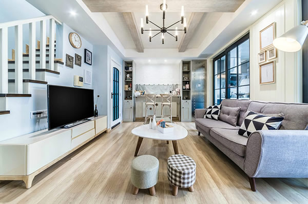 任何一种楼盘的装修都要讲究客厅的布局,复式楼也是。设计师需要多对空间进行合理地分割,所以在此九正家居网建议要保证每一个区域有它的完整性,比如说沙发的摆位、茶几的位置、客厅内绿化的摆放,这些都需要合理的布局,保证客户居住时能保持一种愉快的心情。