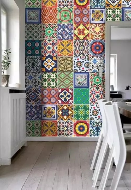 花色瓷砖与纯色瓷砖相结合,可以让空间变生动!把艳丽的瓷砖巧妙组合成为背景墙,自成一片的空间很有个性!可以用瓷砖与地板的搭配隔离出空间区域,在视觉上开阔空间!厨房的隔板利用瓷砖铺贴,让厨房变得时尚!喜欢纯色的瓷砖,没有问题,看看最后一张图!