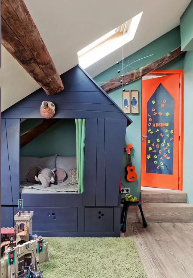 带阁楼的小屋因为空间不规则,所以一般情况下利用率不是很高,但是在这个寸土寸金的城市里,利用好每一分空间才是最为明智的选择。