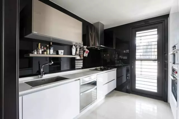 如果水槽是设计在吊柜下方的话。吊柜下方就显得有些鸡肋了。不管是哪个位置,日常使用时这一区域必然会比其他地方稍微暗一些。如果装一个灯,立马就不一样了!哪怕是背光,晚上洗菜也不会看不清楚。
