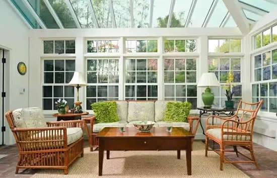 3、阳光房四周玻璃和窗户同样十分重要,采用塑钢窗户,经济实惠,使用断桥铝门窗,奢侈高档,性能比前者优越。