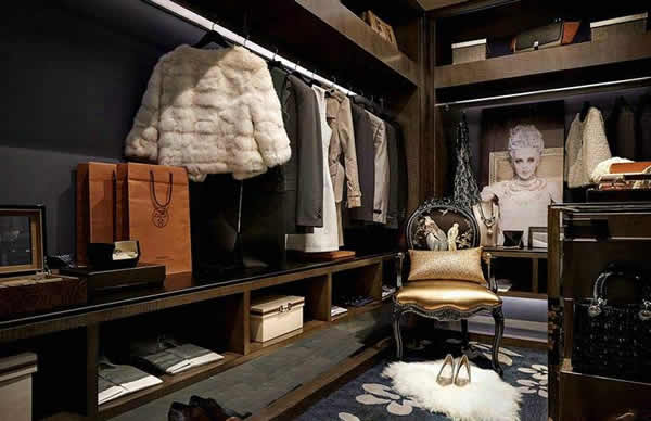 3、如果是独立的衣帽间,设计时要合理安排灯光、色调等元素,使之即融入室内整体风格,又保持独特的情调。