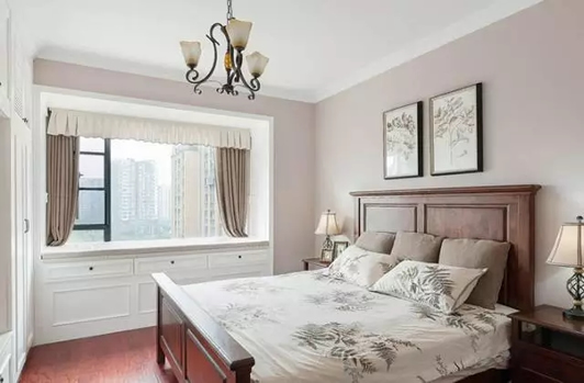 卧室的窗户比较大,冬夏季的隔热保温功能就比较差。所以可以在飘窗外装一层窗纱,里面装一层较厚的遮光窗帘。白天如果坐在这看书,只拉上窗纱,不会影响看书的光线;