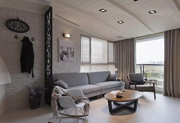 板材拼接,原木做吊顶,别致的造型,处处彰显文艺范儿。粗糙的木质散发出原始自然的森林气息。温润的原木色也能为视觉带来舒缓作用。