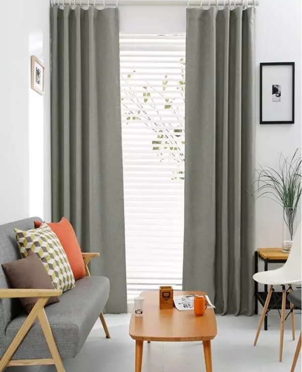 窗帘的面料很广,很多面料都可以作为窗帘布,在选择面料时注重两个方面,一是厚实感,二是垂感性好,传统的窗帘一般是由三层面料组成的,一层是起到装饰作用的布帘,中间一层是遮光帘,再一层是沙帘。