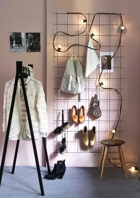 铁艺网格一般都被使用在工作区,其实除非是专业的私人工作室否则多数人的家里,工作区位置都并不大,所以把它挂上墙不仅美观还能用作收纳。
