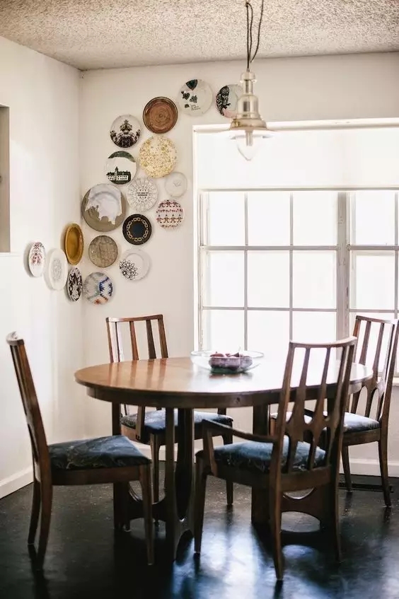 挂盘装饰的方法很简单,只需要在盘子后面贴上强力双面贴就行,如果担心损坏墙面,也可以使用隐形挂钩,将其挂在墙上即可。