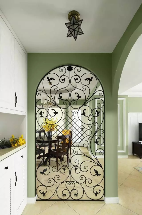 金属的质感,风格质朴,且造型时尚优美的铁艺隔断很受人们的欢迎,也是家居隔断比较常用的。