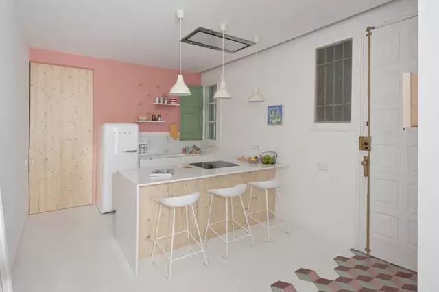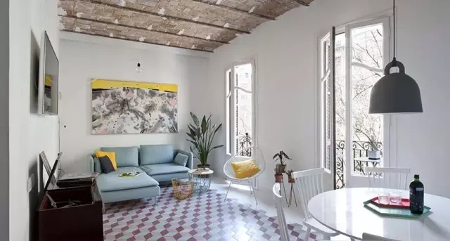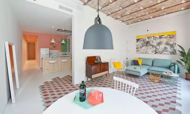 设计师巧妙的利用色彩和材质使空间变得明亮有活力.现代北欧风的粉嫩色系通过同一彩度的搭配,使空间拥有多种色彩而不显杂乱。