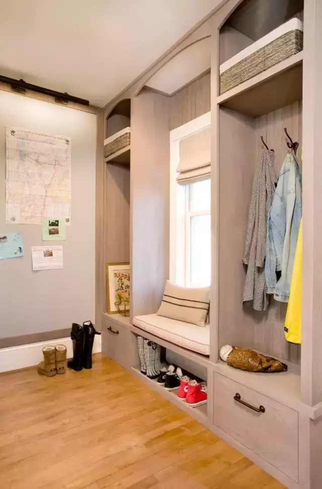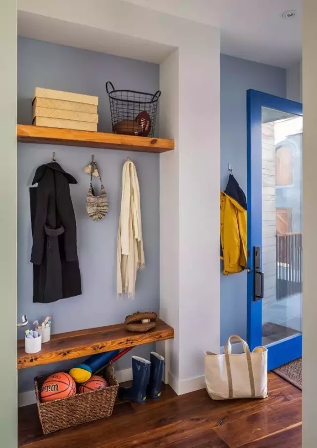 关于玄关,大多数中国家庭会摆置鞋柜,这样鞋子有地方去了,包包和外套就要去找沙发啦!可是如果在门口设计一个小型衣帽间,不仅解决了家里包包外套乱放的现象,还帮您实现了衣帽间的梦想呢!
