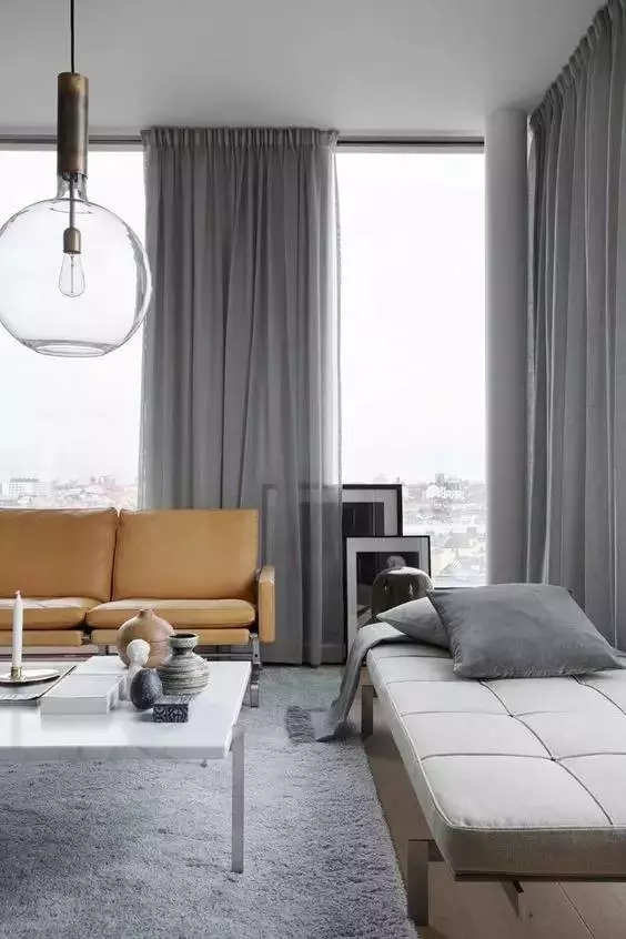 把你的窗帘挂在天花板上,以帮助创造出高度的错觉。
