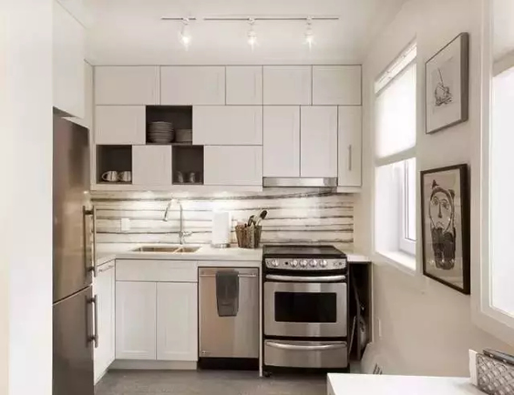 突显厨房天花板高度最好的办法是,把所有的橱柜堆叠到天花板下。即使最上方的橱柜你根本用不到,它起到的装饰效果也是物超所值的。