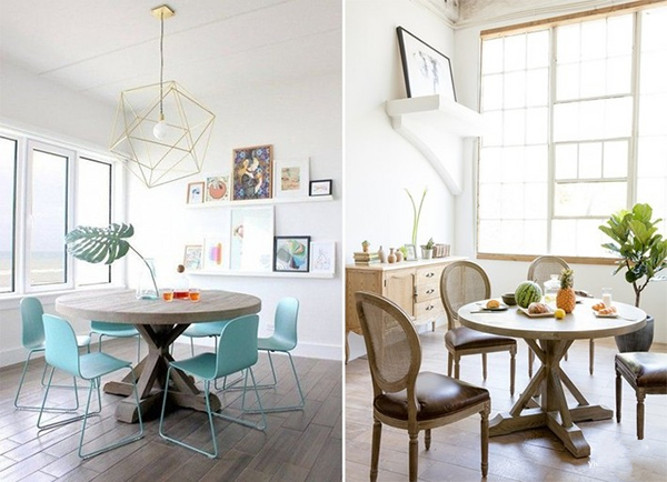 餐桌形状餐桌一般为长方形、圆形,也最好选这几种,追求奇异怪状的餐桌一时间可能很新鲜,但久了就很不实用,很不符合家里需要。若是想要家里和和睦睦选择圆形餐桌为宜,长方形的餐桌会把人的间距分开。当然,如果家里是成对的,不妨选择长方形,生活有序。