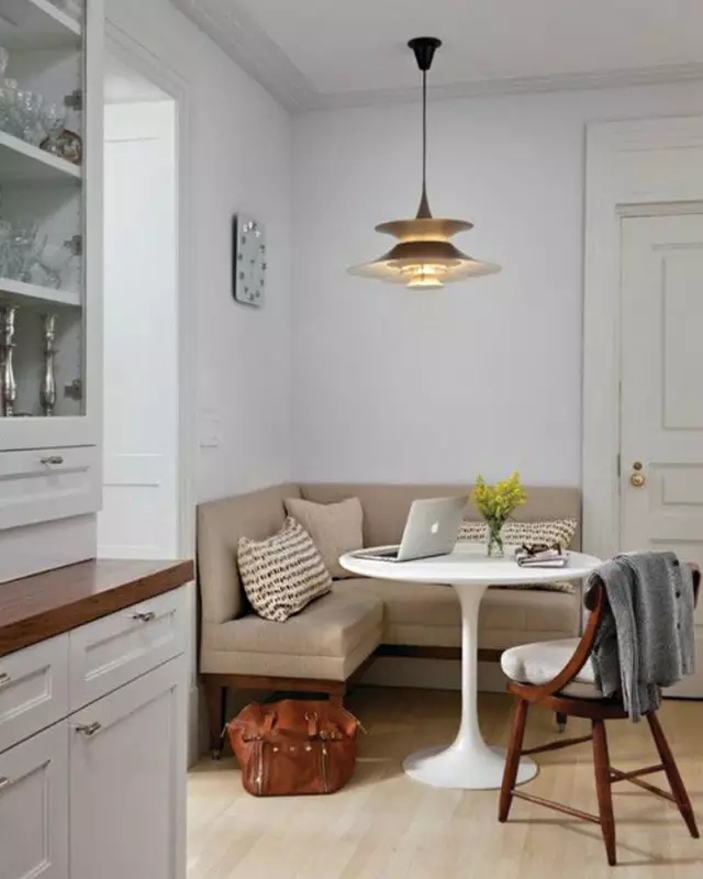 这样的角落用餐区,应该有不少人会喜欢吧?家里面积小的朋友可以直接用来做吃饭的地方,有充裕空间的朋友这样来装饰家里的尴尬角落,也是美观而实用,在这里与闺蜜们喝喝下午茶,一个人窝在这里玩玩电脑看下杂志也很适合。