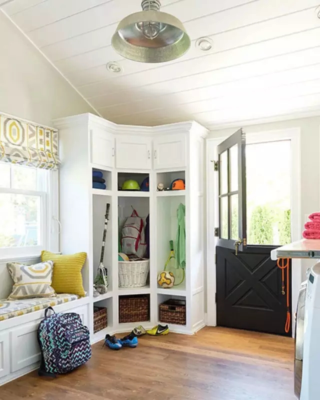 卧室或者是玄关附近位置的尴尬角落,放一个转角式的置物柜会是个不错的做法。安装在入门位置的话,运动用品、健身背包、书包、遛狗绳之类的,可以全部都集中在这个位置,干净整齐。至于卧室里,则是衣柜的延伸,但只适合家里面积比较大,看起来有点空荡荡的家庭。