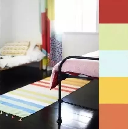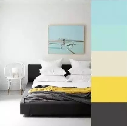 清爽的家具配色,可以加上一点暖色系例如:红色、粉色、橙色。主要起到平衡的作用,不会显得房间很冷清。
