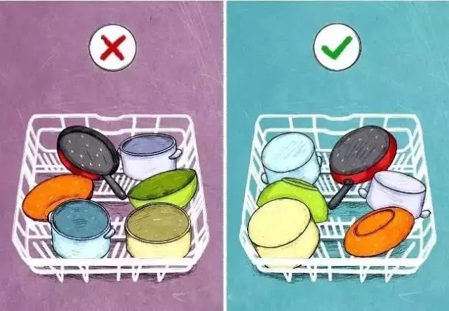 4.当把盘子放在碗碟机里时,一定要按顺序放好,防止它们不会互相接触。