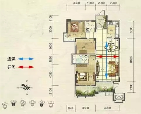 如果进深过大,开间过小,则会影响采光和通风。如果进深偏小,开间过大,则不利于保温。一般的户型图上会标注进深、开间这两个指标的详细数据。