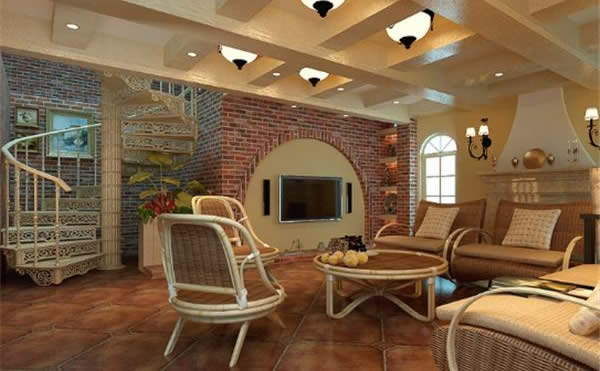 在装饰客厅背景墙时,颜色古朴的亚光复古砖是最受欢迎的瓷砖装饰元素。复古砖的饰面就像多年风化的石板,看上去像是自然形成的有棱有角的凹凸面,摸一摸却是平滑的釉面。一流的复古砖,一般饰面的颜色和纹路是“仿旧如真旧,似石而非石”。这样的瓷砖与原木饰材、布基饰材等天然材料搭配装潢时,可以营造出自然古朴、韵味绵长的境界。