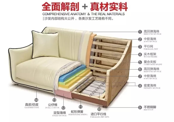 先给大家放一张沙发剖面图,让大家初步了解一下沙发是怎么做的: