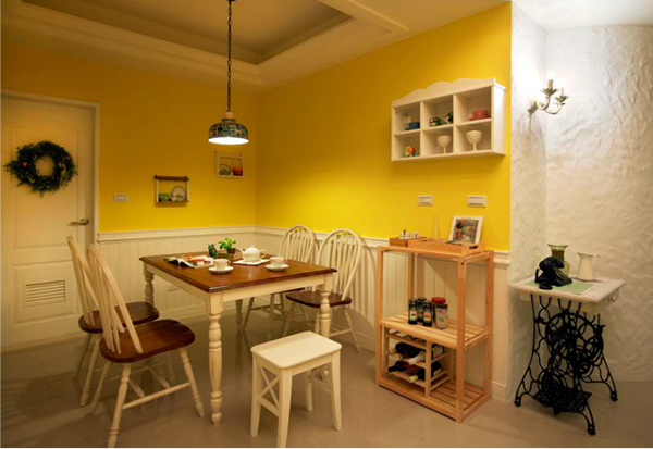 3、餐厅的颜色尽量使用暖色调,例如橘黄色和黄色这种暖色调,放在餐厅还能提高人们的食欲。但是厨房还是尽量避免暖色调。