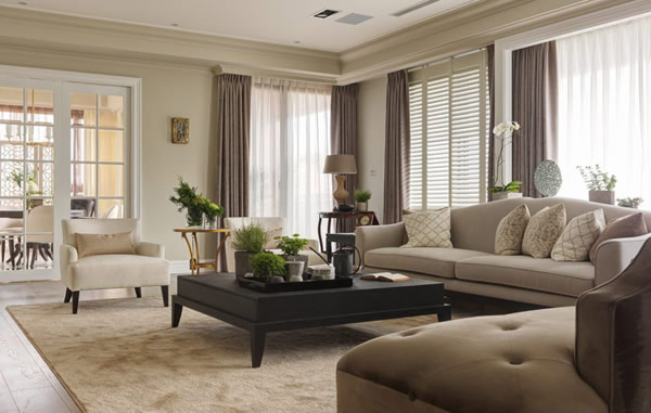 2、用颜色营造居室的层次效果一般是的原则是:墙浅、地中、家具颜色较深,天花板的颜色一定要比墙面的颜色浅或者是同色,墙面为深色时,那么天花板的颜色就一定是浅色。