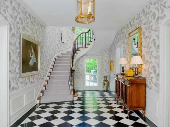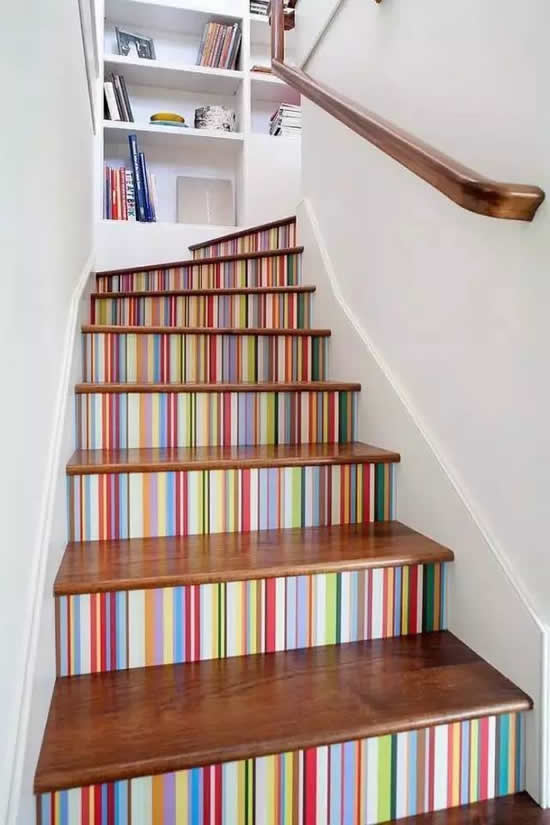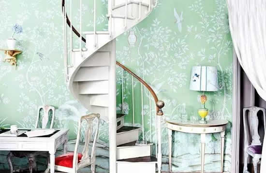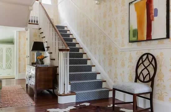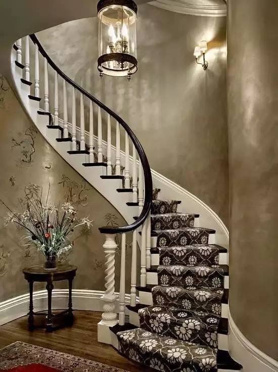 楼梯壁纸在颜色的选择上是可以更加肆意妄为一点,因为它做为一个空间里面单独存在的个体,不用太过于顾虑全局基调。